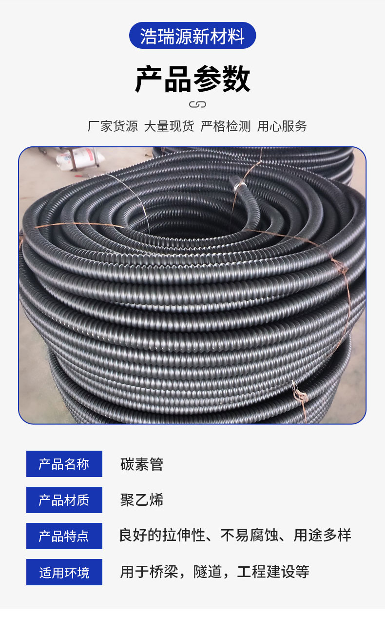 HDPE碳素螺纹管电力穿线波纹管单壁波纹管阻燃管自带钢丝螺纹