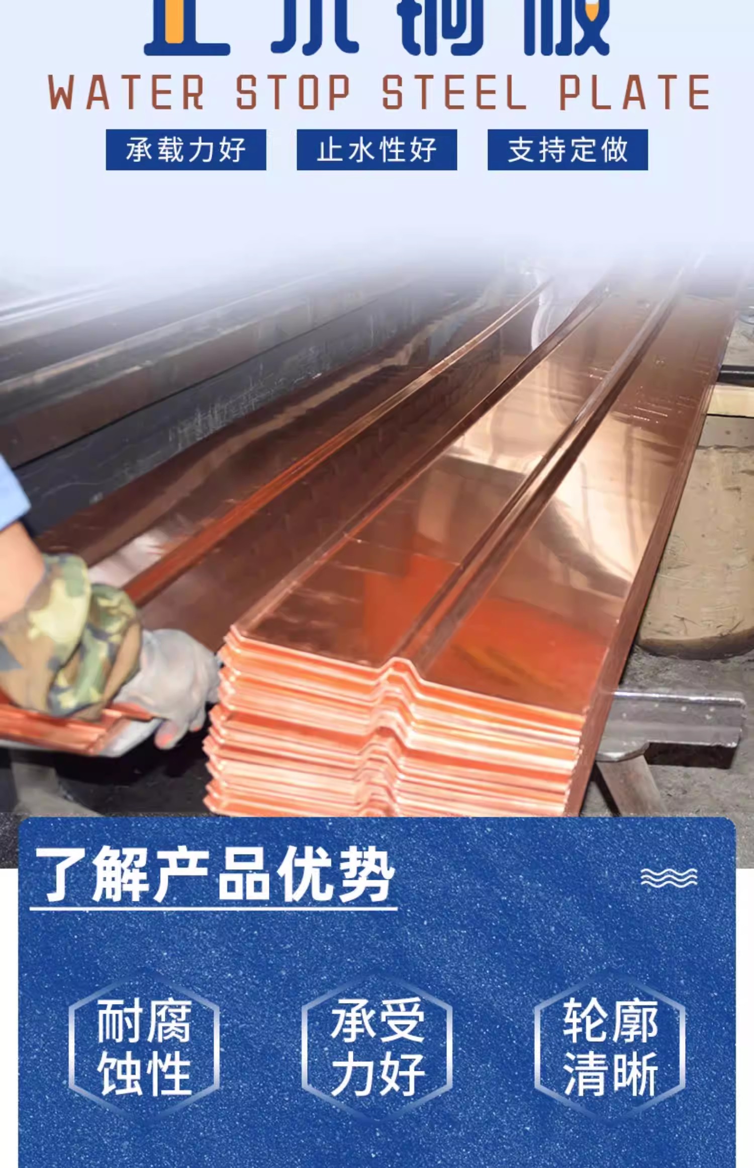 紫铜止水铜片复合铜止水板防水铜止水带水利水电工程U/V/F型