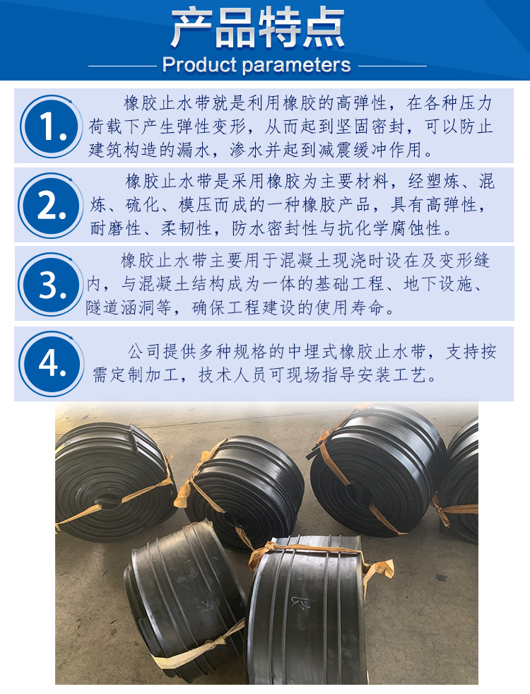 橡胶止水带中埋式钢带背贴式建筑施工缝外贴式中埋式橡胶止水带