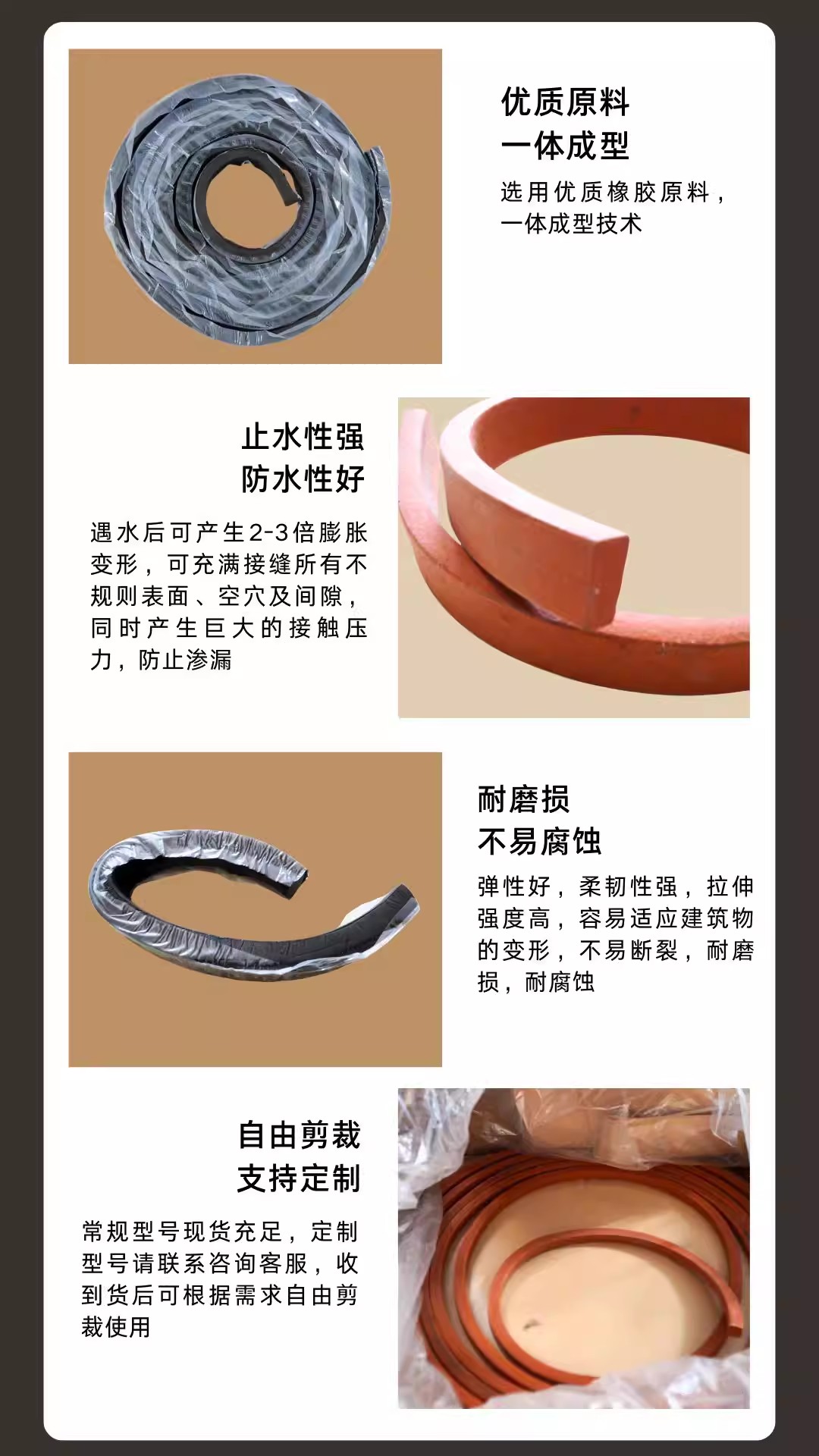 遇水膨胀止水条腻子型止水条缓膨型橡胶止水条