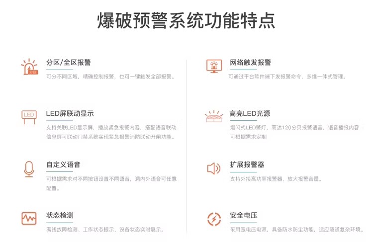隧道矿山爆破预警系统一键紧急报警放炮语音警示显示屏联动报警