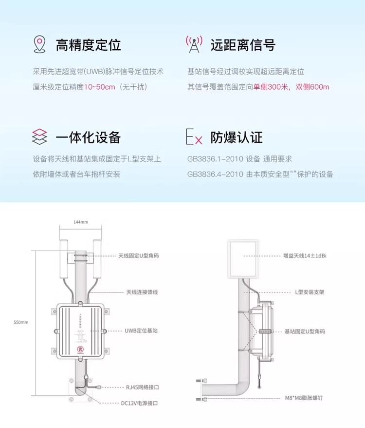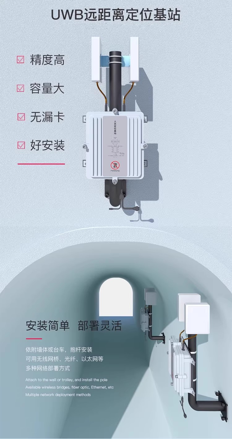 隧道矿山人员精准定位uwb基站RFID标签门禁考勤车辆管理