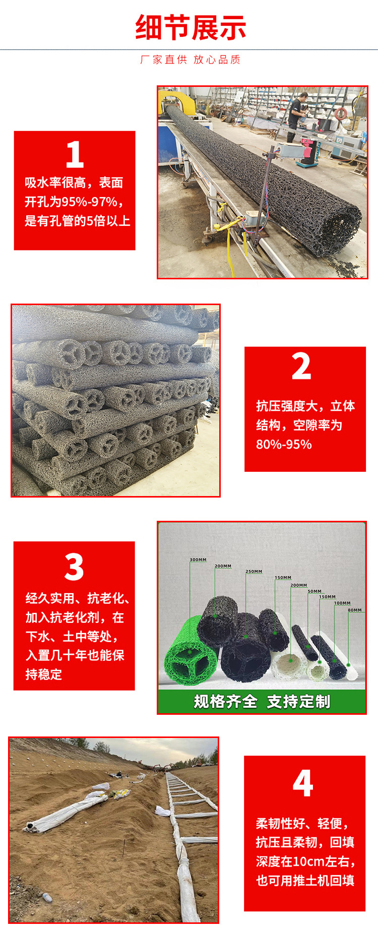 软式透水管生产厂家 自产自销50mm 直径弹簧软式透水管
