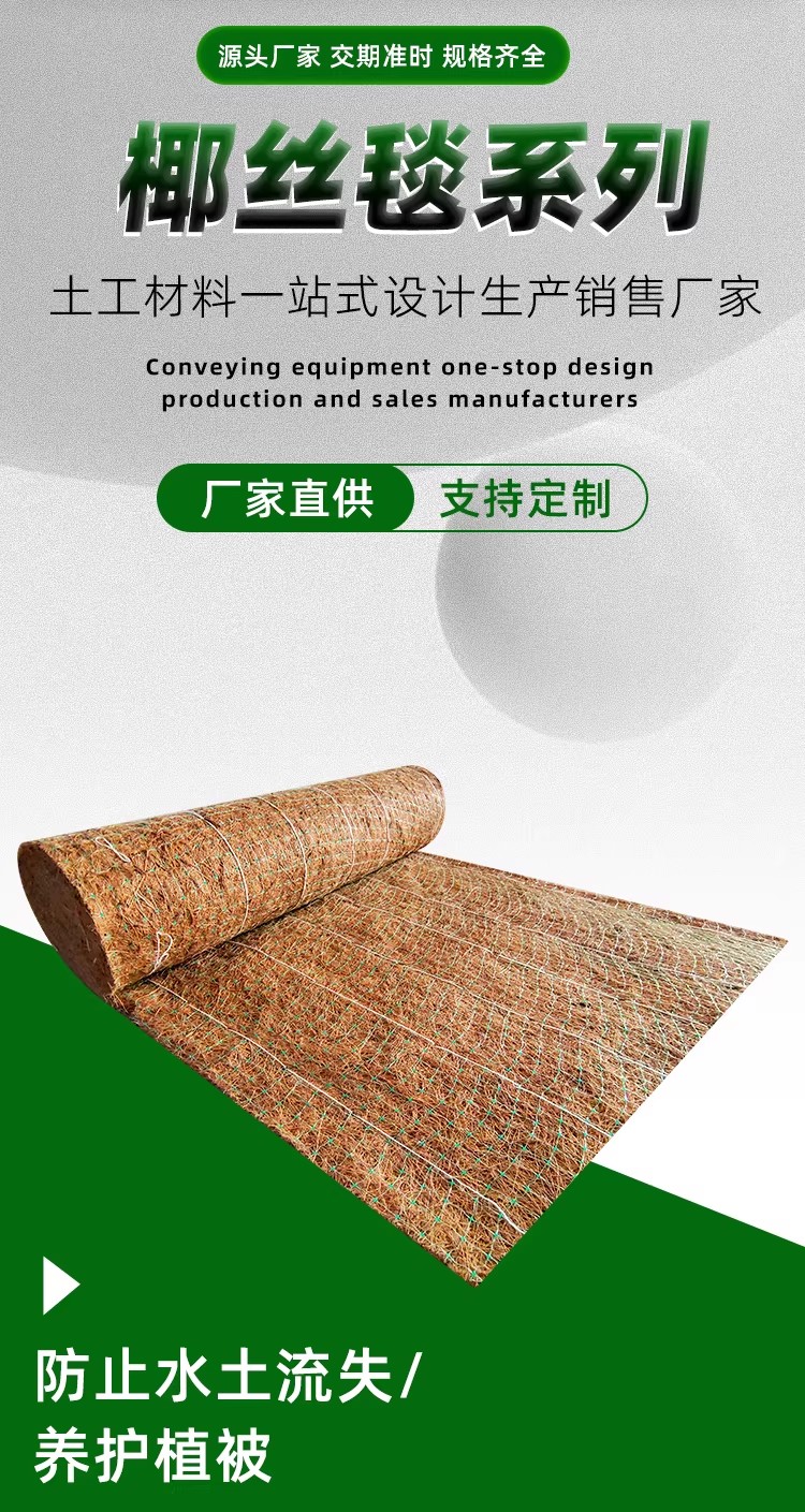 椰丝毯定制护坡矿山公路草籽植生毯绿化草毯加筋抗冲击植物纤维毯