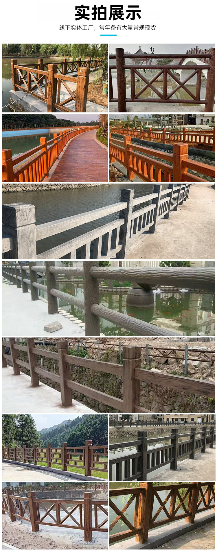 户外园林围栏公园景观栏杆混凝土栅栏水泥仿木护栏河道木纹防护栏