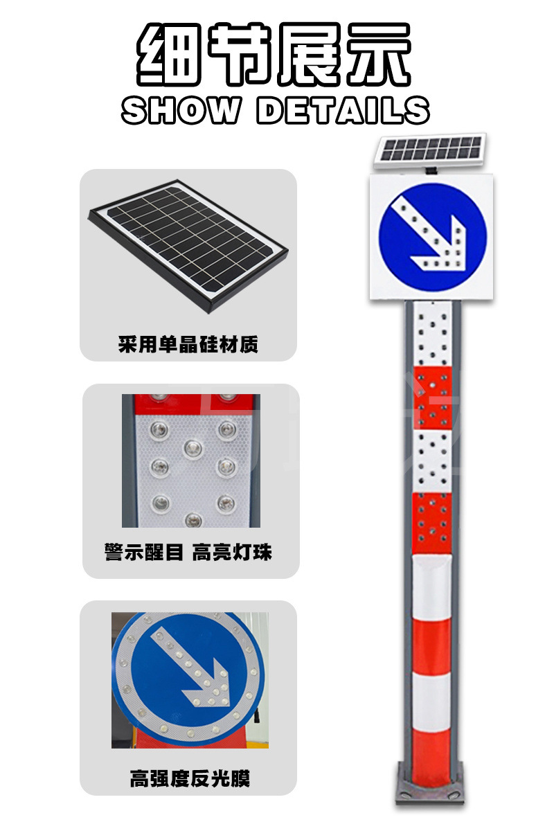 太阳能全透发光标牌LED智能面交通标志自主动发光道路指示牌