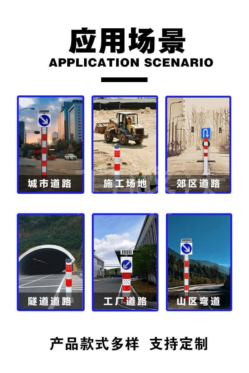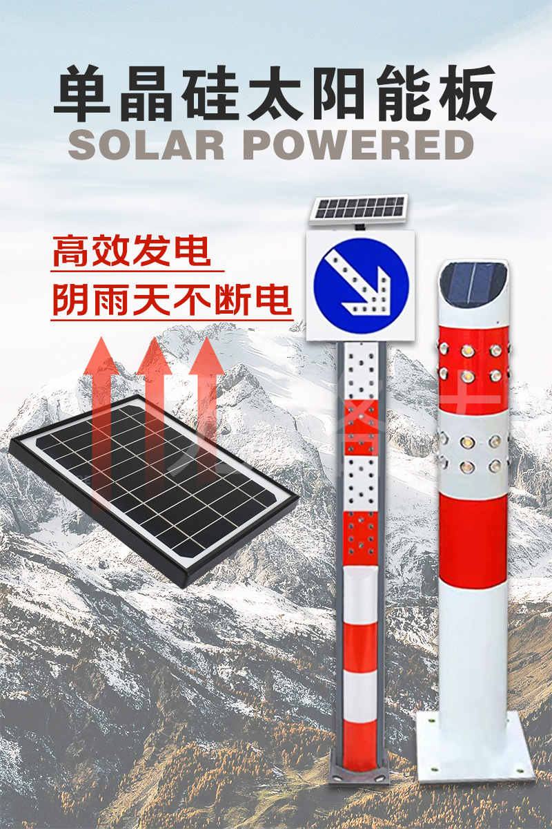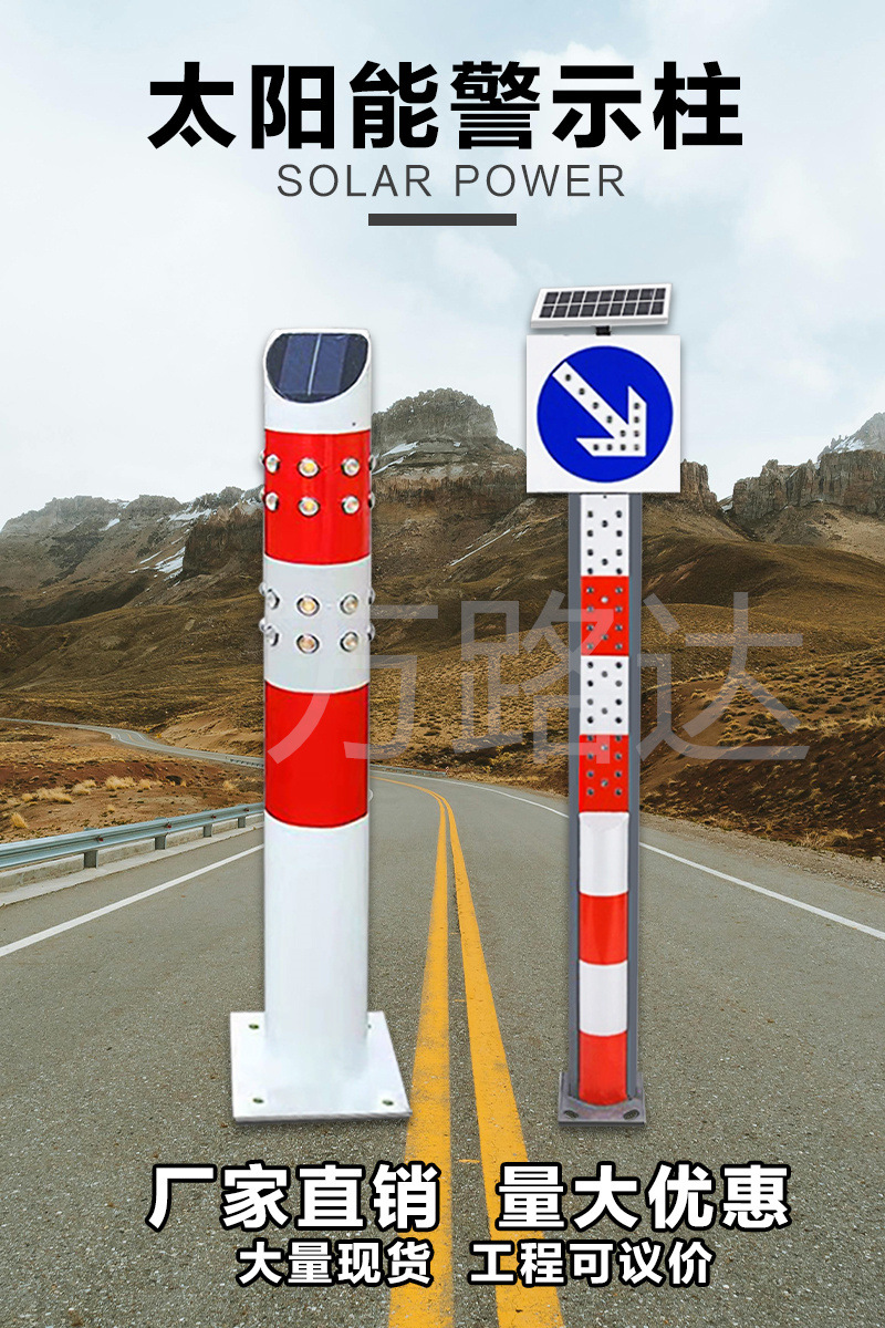 户外太阳能警示柱市政道路防撞柱夜间高亮爆闪交通隔离标识