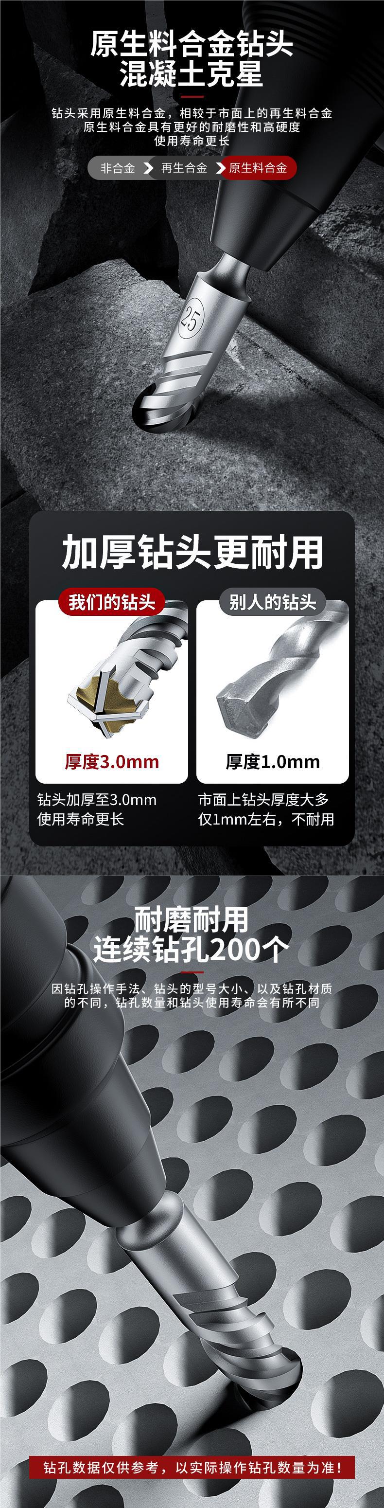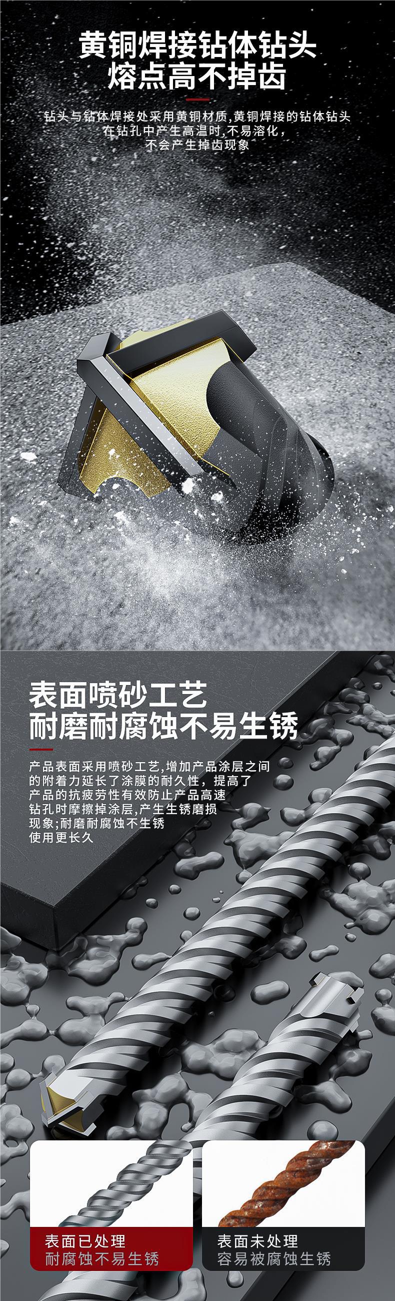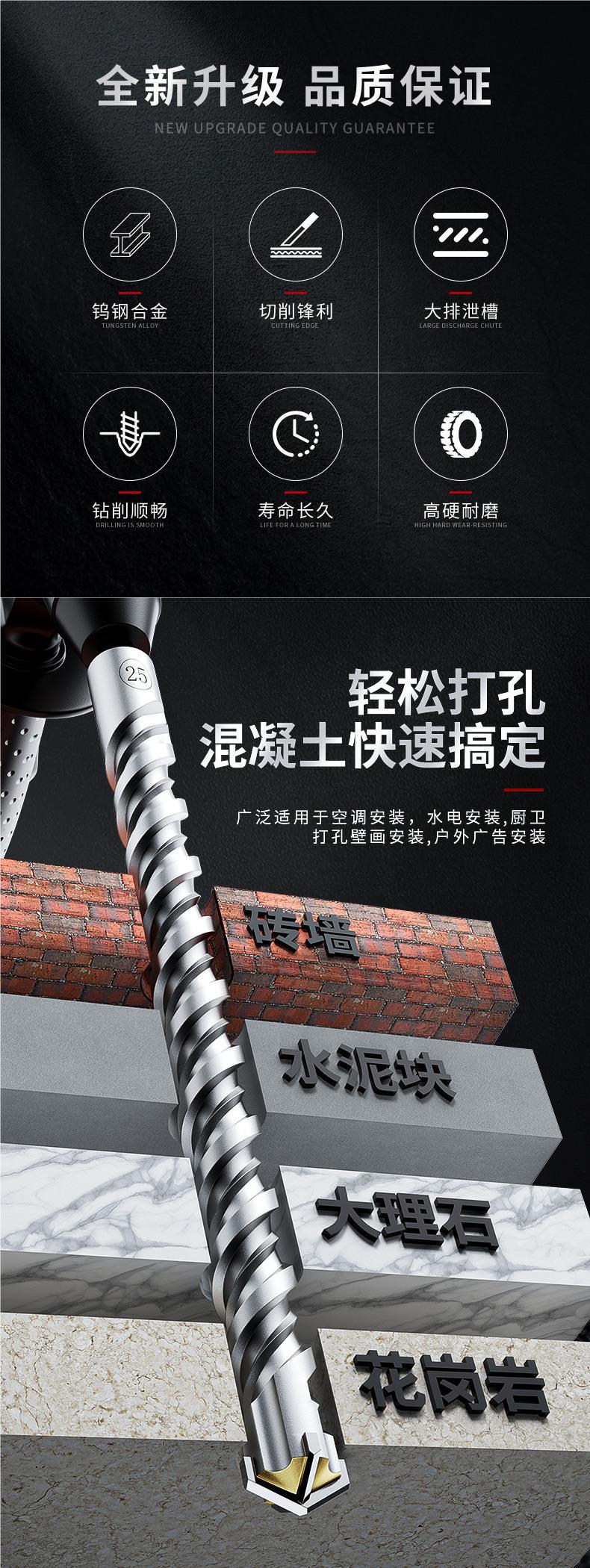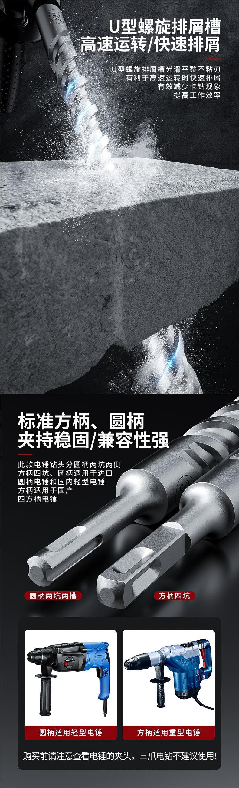 厂家十字冲击钻头电锤混凝土打孔方柄穿墙圆柄过墙转头