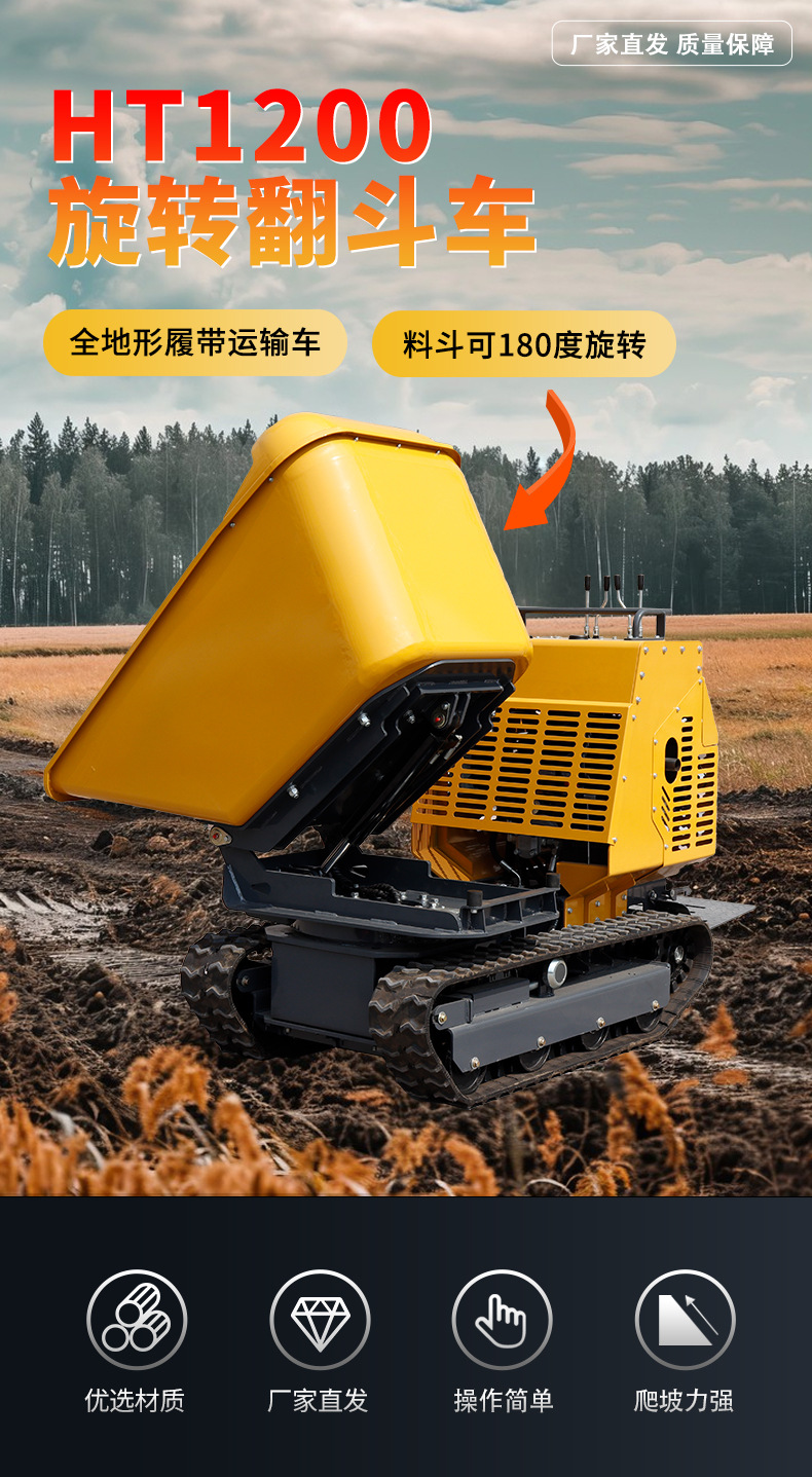 厂家直供农用小型翻斗车 JT1200果园工地履带式运输车