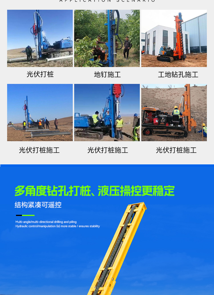 液压履带式光伏打桩机85kW动力头360°旋转山地沙漠电站专