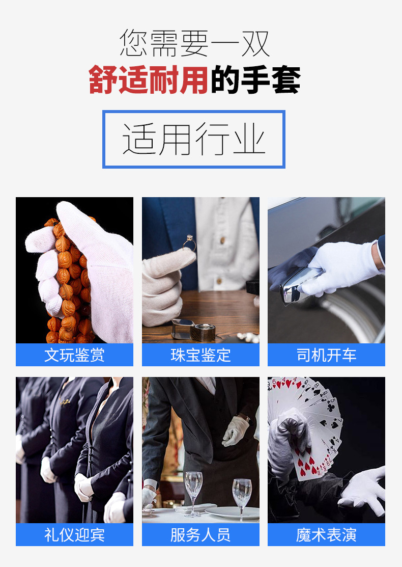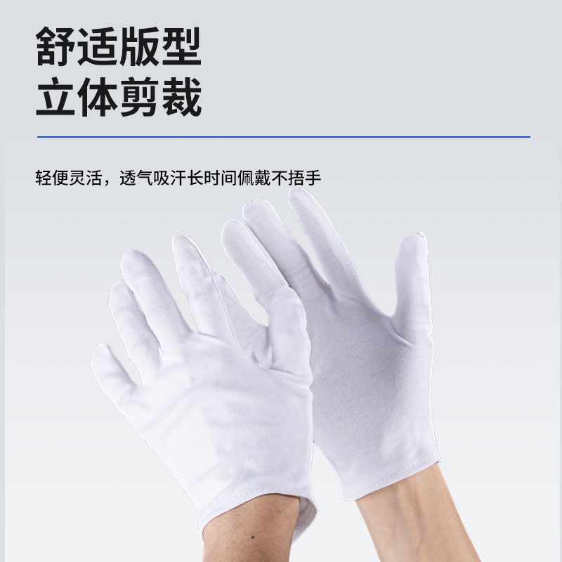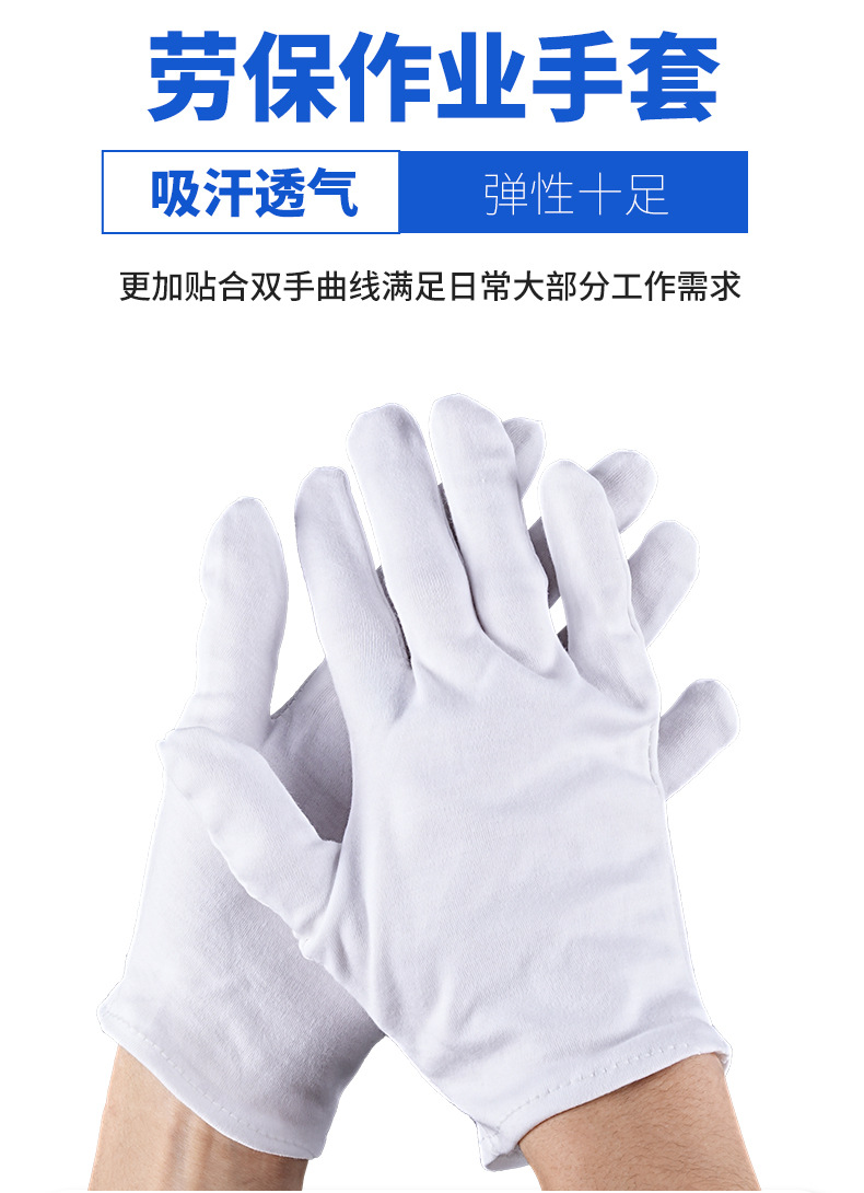 白手套文玩礼仪外贸纯棉作业手套加厚汗布跨境棉手套批发加长防护