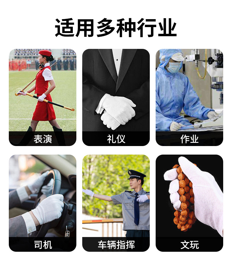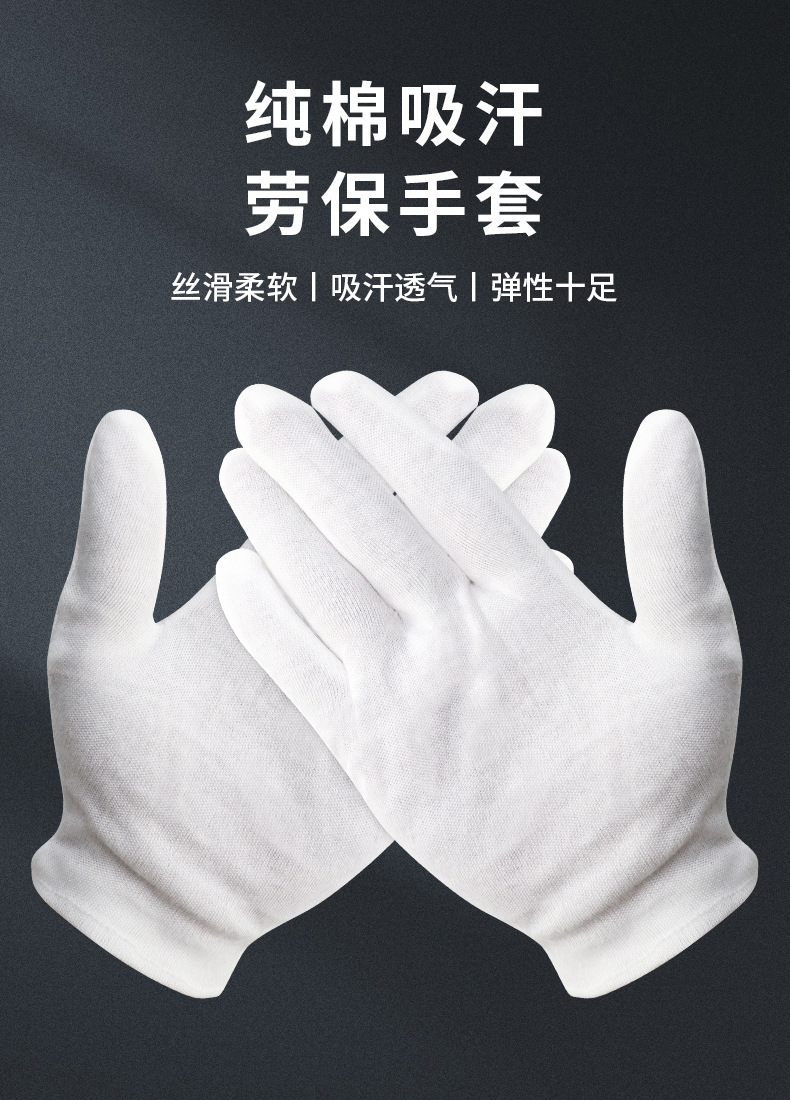 棉手套礼仪文玩手套耐脏劳保作业开车质检纯棉防滑防护防滑耐磨