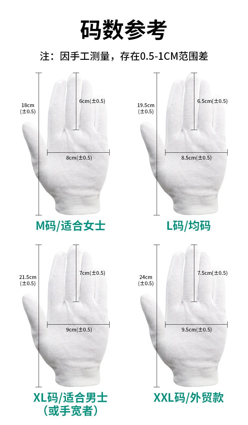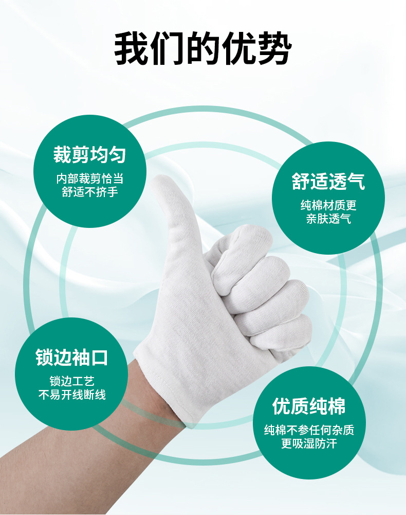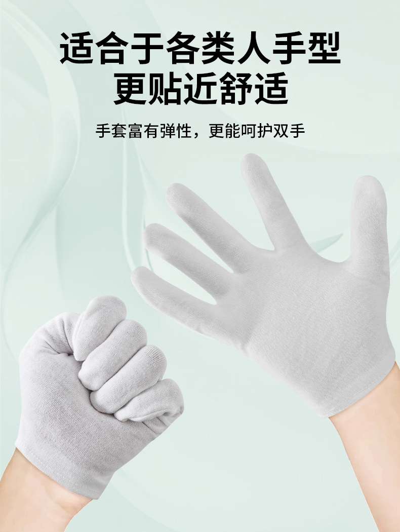 白手套文玩礼仪外贸纯棉作业手套加厚汗布跨境棉手套批发加长防护