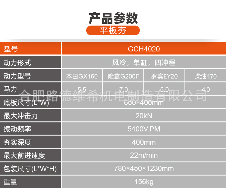 GCH4020手扶式液压双向平板夯汽油打夯机路面压实夯实机夯
