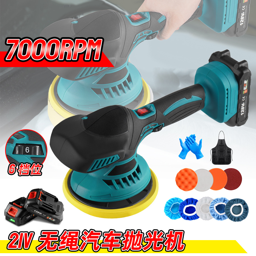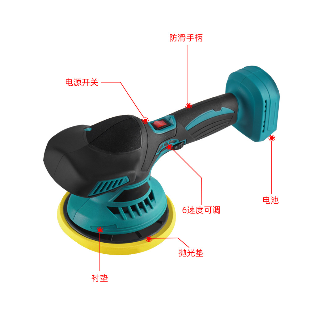 参数 功率:400W 外壳材质:abs 电压:21V 功能:抛光 打蜡 磨盘尺寸:150mm 转速:2500-7000RPM 电压:21V 档位:6个档位 内箱尺寸:33.5*24*16.5 外箱尺寸:63.5*43.7*39 一箱六个 裸机:1600g 一电一充:2100g 两电一充:2400g