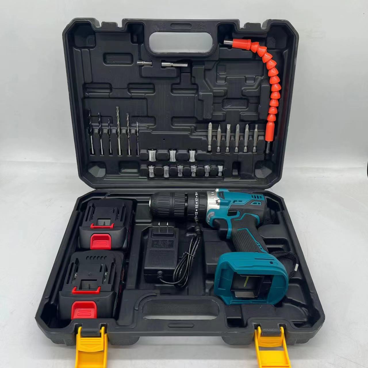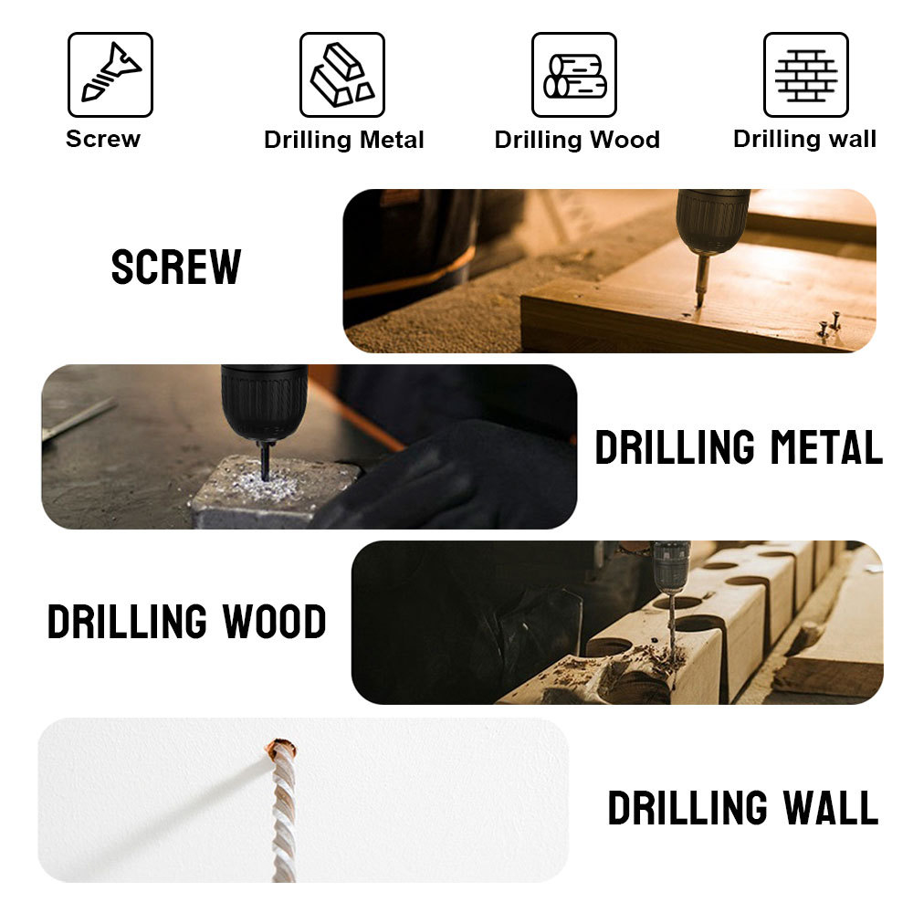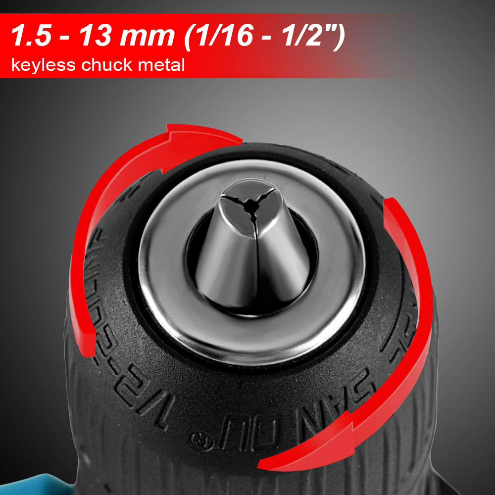 实际参数: 最大输出功率:300w 能力: 钢材13mm(1/2") 木材38mm(1-1/2") 砖墙13mm(1/2") 输出扭矩:27-54NM 冲击频率:低速0-7500ipm、高速0-25500ipm 转速:低速0-500rpm、高速0-1700rpm 夹头能力:1.5 - 13 mm (1/16 - 1/2") 档位:25档 速度档位:高低档 功能:3功能 开关类型:无极变速开关 振动等级:砖墙上锤钻:8.0 m/s²、钻金属:2.5 m/s² 或更小 声压等级:82 dB(A) 电机尺寸:3820