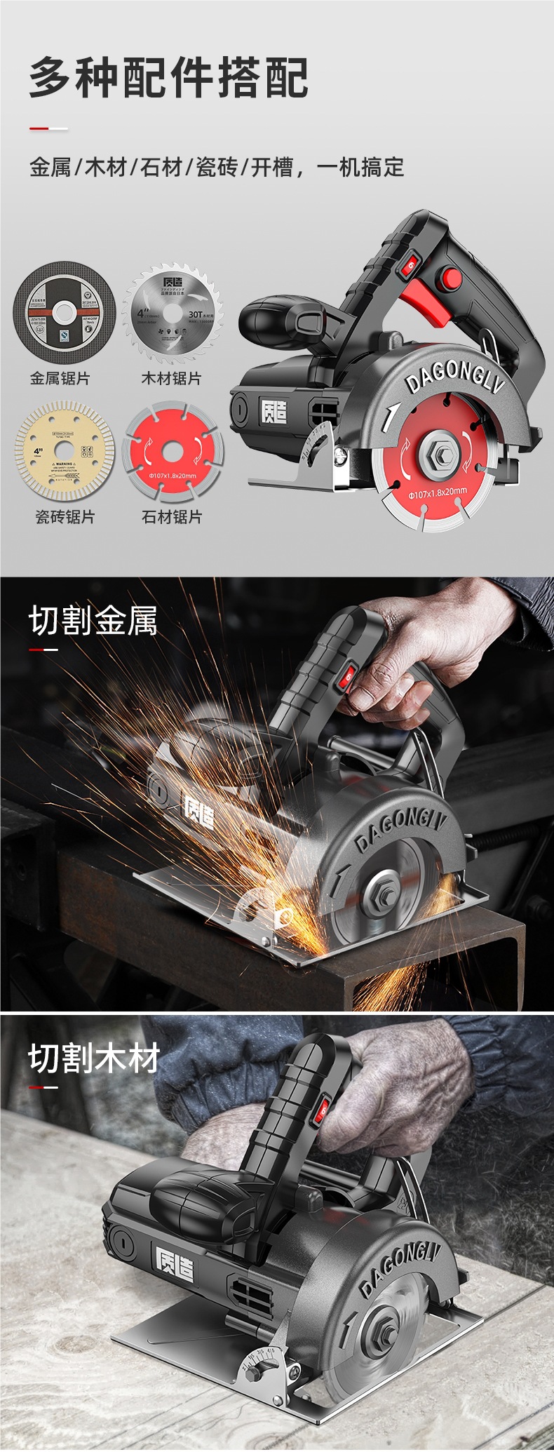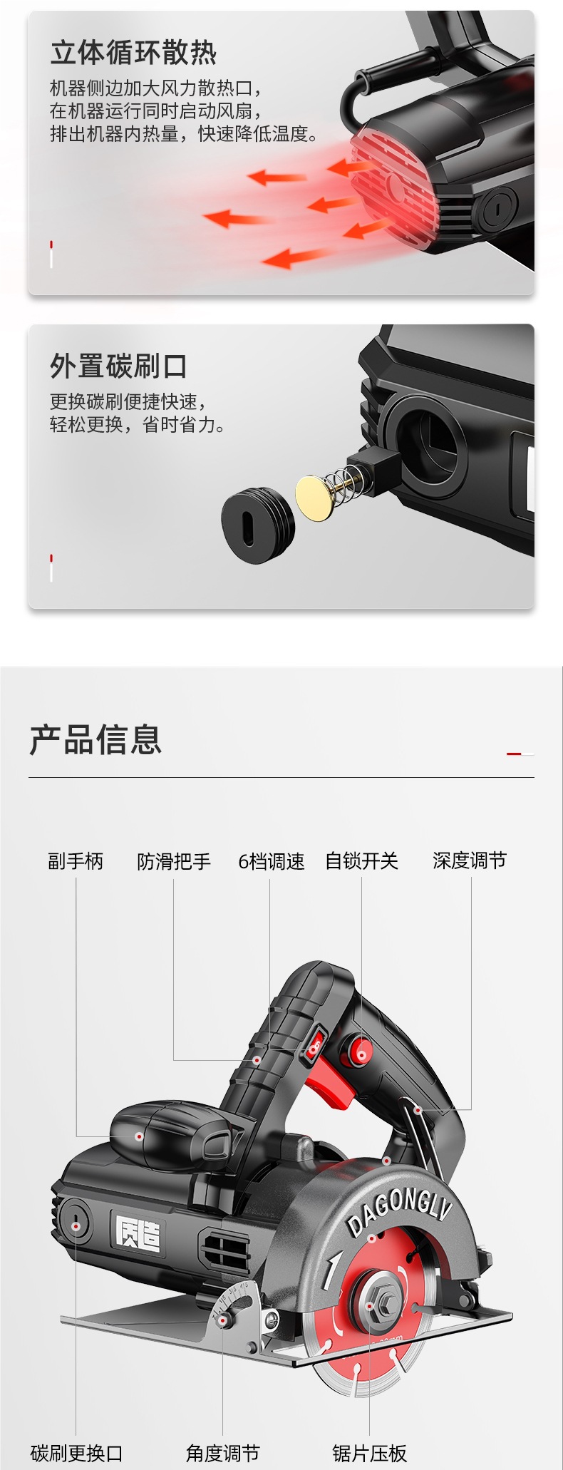 跨境牧田插脚无刷76mm角磨机切割机两用款无极调速锂电无刷马