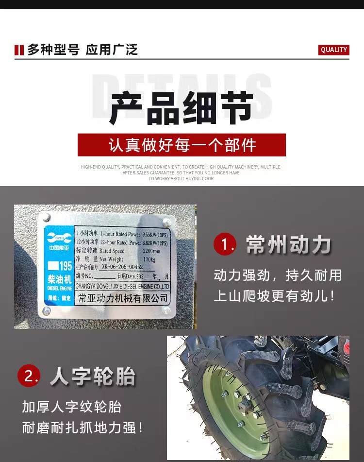 手扶拖拉机农耕运输大马力旋地机电启动柴油小型家用手扶拖拉机