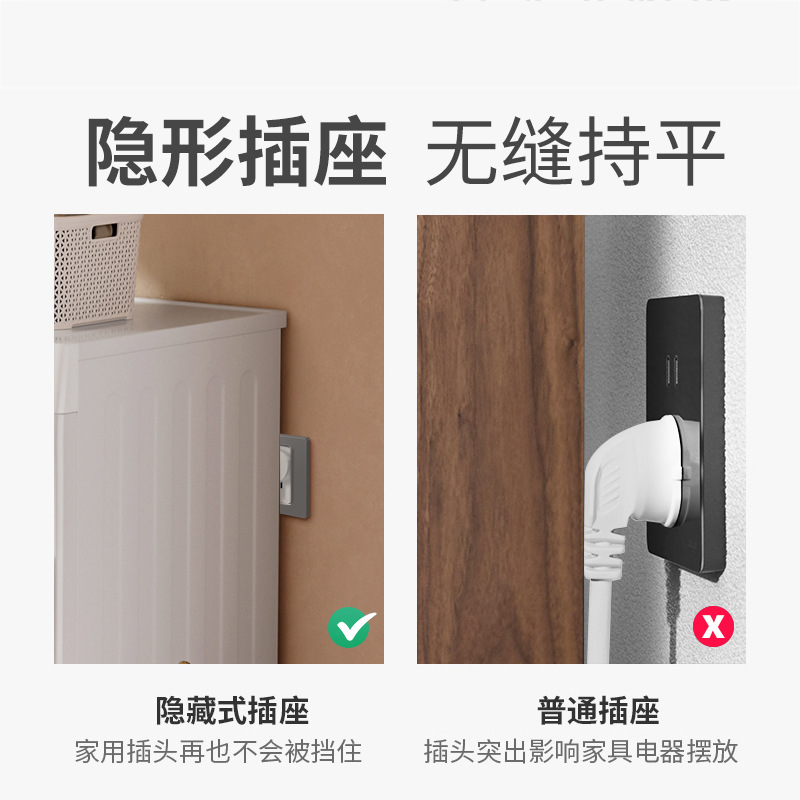 开关插座内嵌式五孔隐藏冰箱嵌入式空调专用隐形插座86型面板
