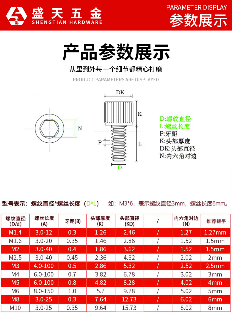 型号:内六角螺栓