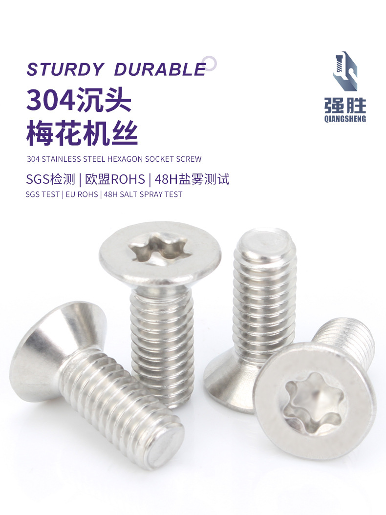 304不锈钢平头梅花螺丝GB2673沉头内梅花槽螺丝M6梅花
