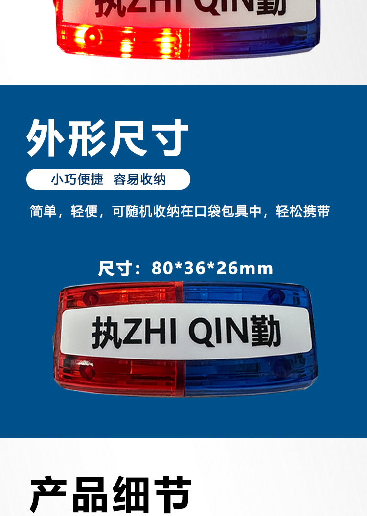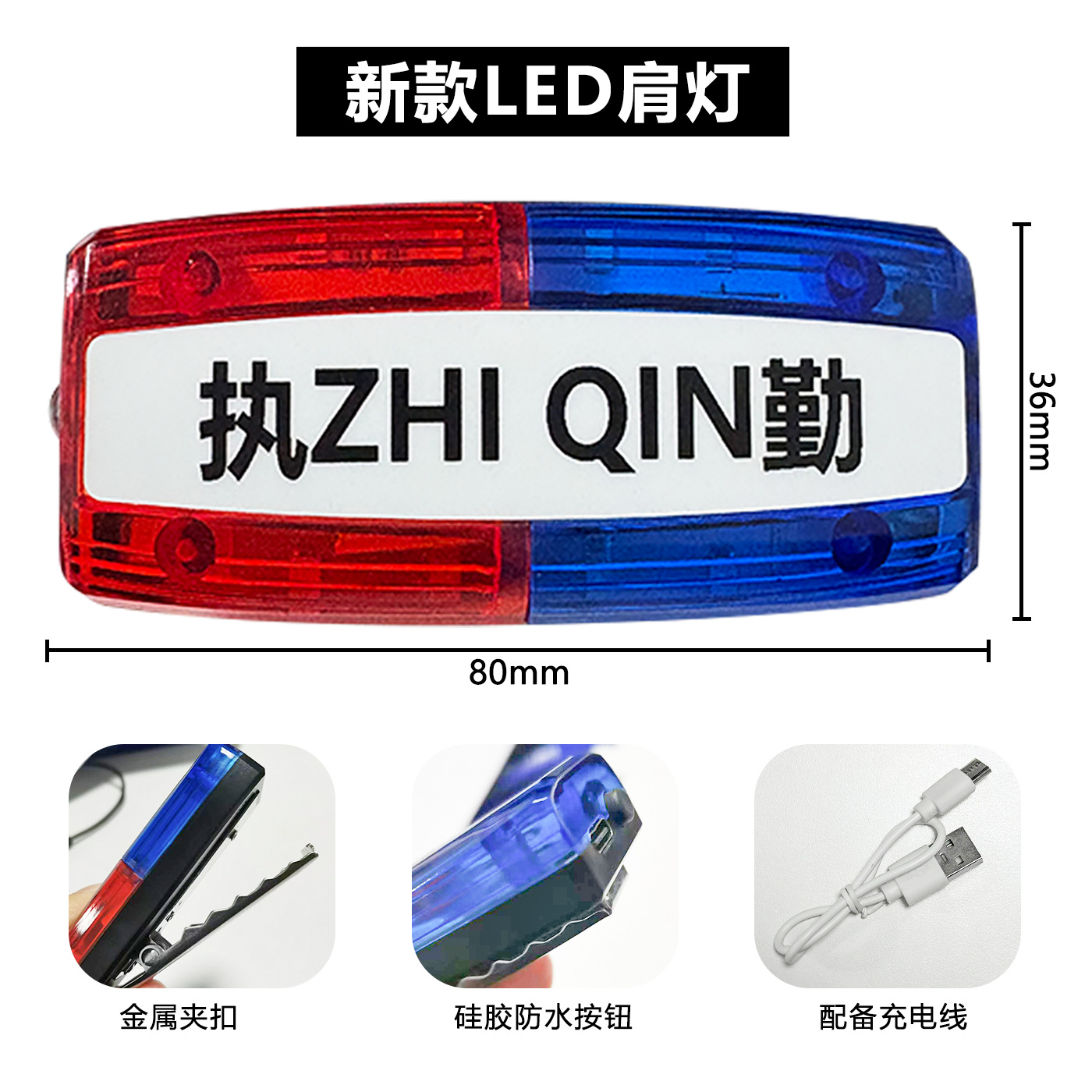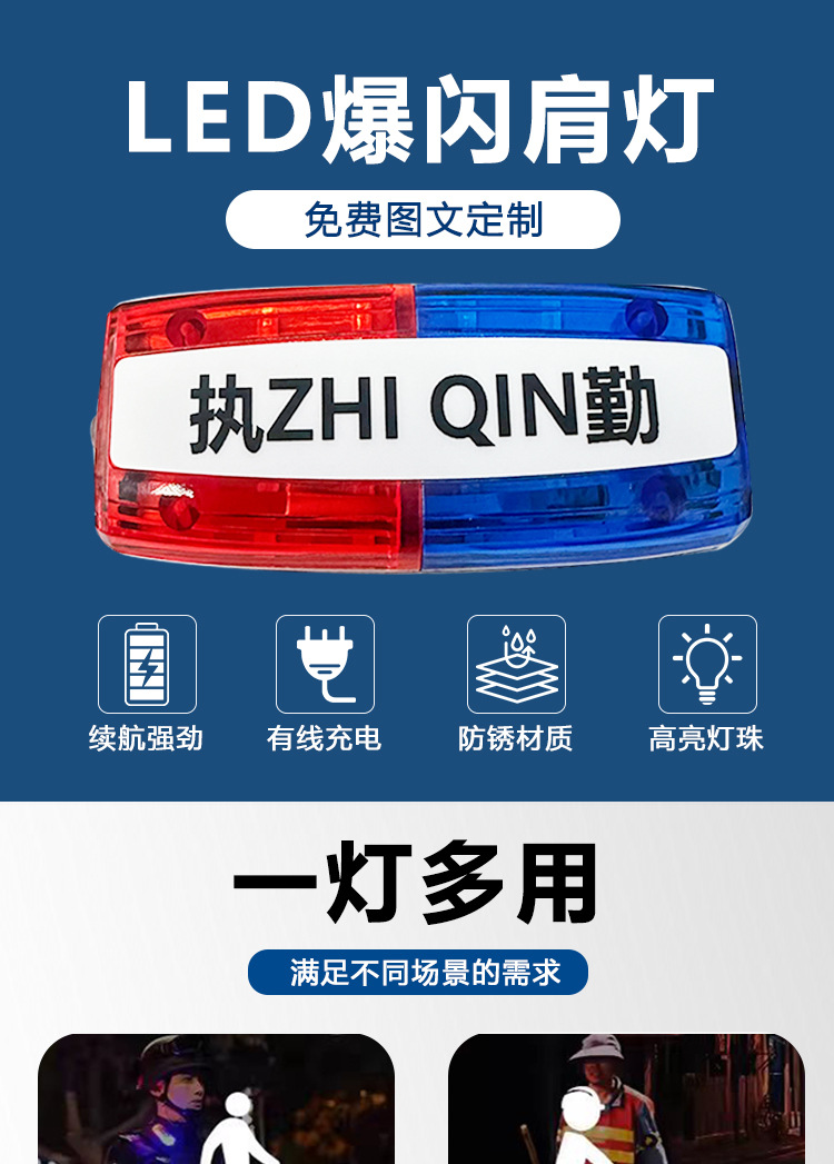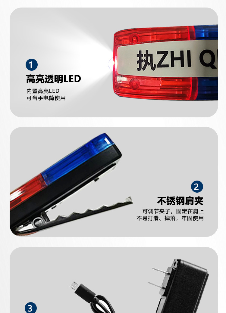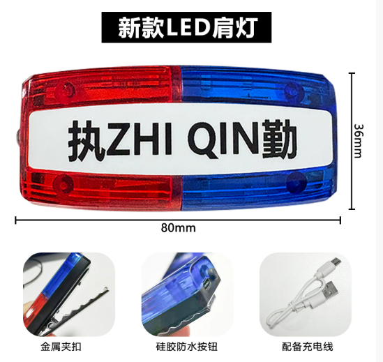 新款 LED红蓝肩夹爆闪肩灯保安巡逻执勤夜间警示灯闪光信号灯