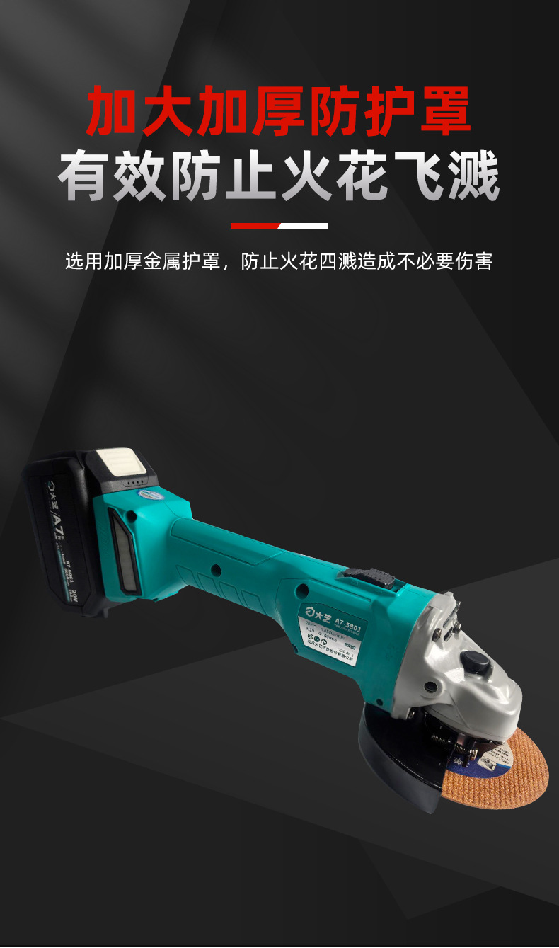 大艺锂电角磨机无刷充电式5801A7抛光手磨机无刷磨光机
