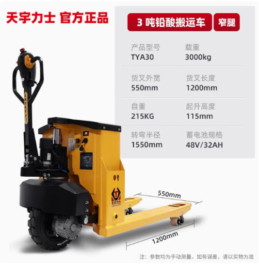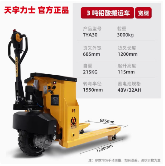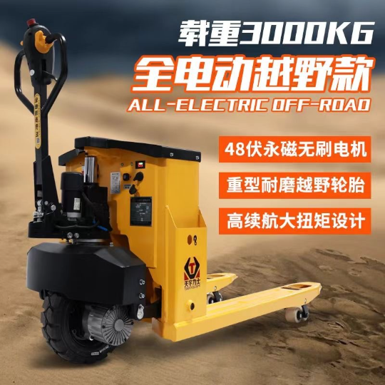 天宇力士越野款电动叉车载重3吨大轮子搬运车地牛爬坡装卸车拉砖