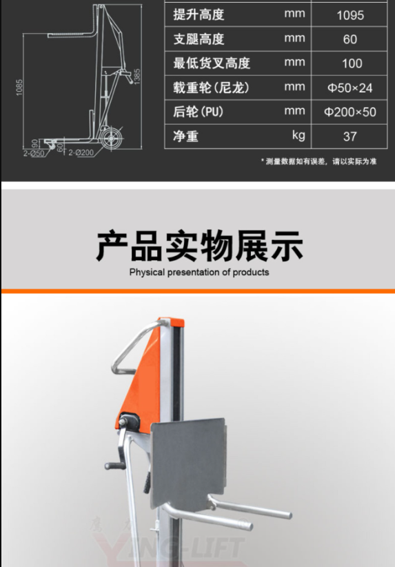 HOULAR登高车半电动随车叉车SDYG-Z05轻便便携货物